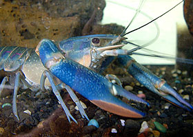 cherax sp.Zebra Procambarus fallax í ýmsum litum og stærðum einn með hrogn annar með unga þessi tegund er bara kerlur og fjölgar sér sjálf