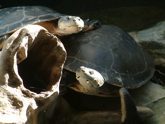 Heima hjá fararstjóra, er stór tjörn með skjaldbökum